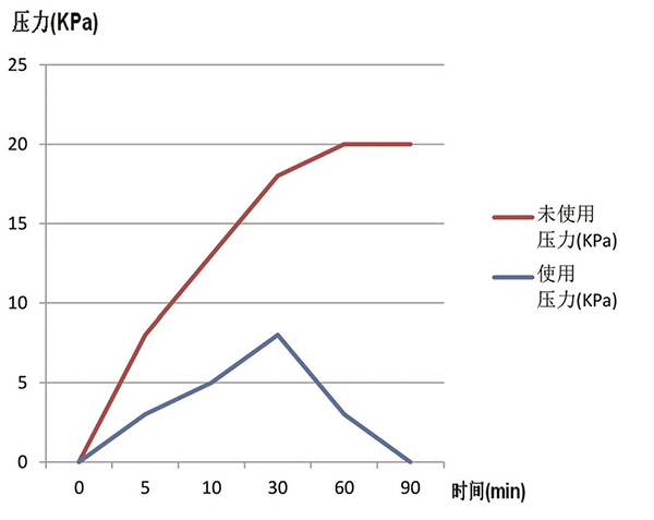 使用防水透氣閥的大燈內部壓力緩慢上升,并逐漸趨于零。