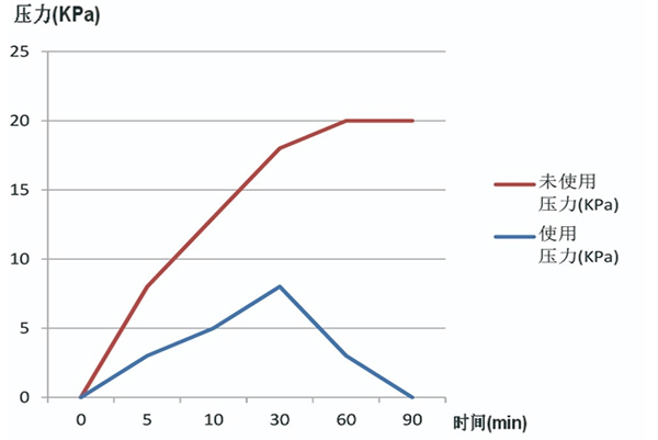 使用防水透氣閥的大燈內部壓力緩慢上升,并逐漸趨于零。